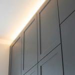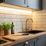 Главный «ВАУ-эффект» этой модели раскрывается вечером. Мы интегрировали многоуровневую систему подсветки: теплая LED-лента в рабочей зоне превращает готовку в удовольствие, а скрытая подсветка цоколя создает эффект «парящей кухни», визуально расширяя пространство пола. Глубокий серый цвет фасадов в сочетании с текстурой натурального дерева на полу и столешнице — это база, которая не устареет через 10 лет.