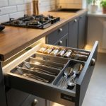 Забудьте о хлопающих дверцах — здесь установлена австрийская фурнитура с доводчиками плавного хода. Глубокие выдвижные ящики выдерживают нагрузку до 40 кг, а влагостойкая столешница устойчива к горячему и царапинам. Мы адаптируем этот проект под ваши размеры в Салавате с точностью до миллиметра, обходя все газовые трубы и неровности стен.